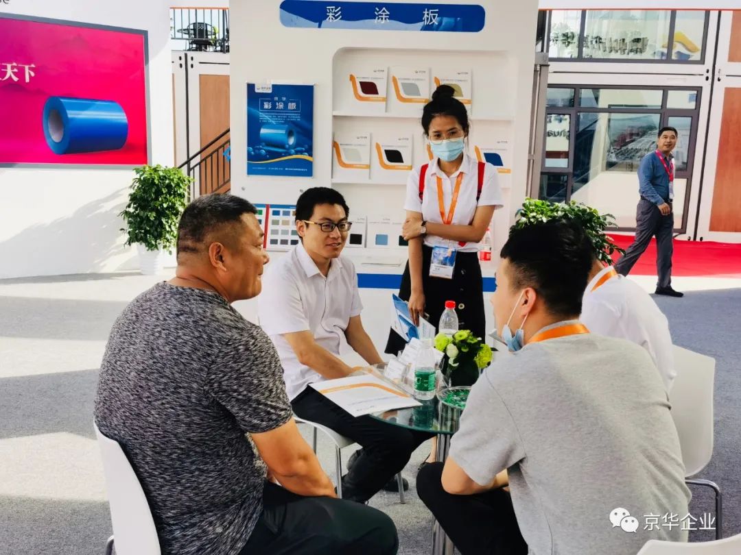 其中,產(chǎn)品展示區(qū)—京華企業(yè)旗下產(chǎn)品的京華彩涂板、京華精品彩涂板、京華高端彩涂板、熱鍍鋅板、高強(qiáng)鋼板等板材,憑借自身輕質(zhì)、美觀、防腐、抗菌、環(huán)保等優(yōu)質(zhì)屬性吸引了眾多參展者的駐足觀看和青睞。企業(yè)旗下的5大板材可廣泛應(yīng)用于基礎(chǔ)設(shè)施建設(shè)、交通工程、商業(yè)地產(chǎn)、工業(yè)建筑等領(lǐng)域,為大美雄安的建設(shè)保駕護(hù)航。