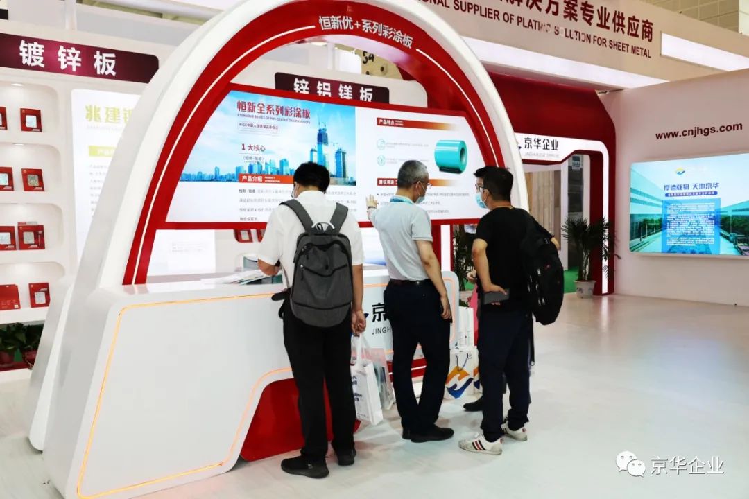 京華兆建受邀參加此次展會,精心準(zhǔn)備、學(xué)習(xí)先進(jìn)、交流合作,參展商品主要包括鍍鋅板、鋅鋁鎂板、彩涂板、高端彩涂板、恒新功能性彩涂板等。恒新功能性彩涂板憑借創(chuàng)新的設(shè)計理念、選用國際一流材料合作伙伴、配合最先進(jìn)的生產(chǎn)工藝,成為了同行業(yè)展品中的一大亮點,鋅鋁鎂板憑借良好的功能性以及超長的使用壽命吸引了眾多參會客戶與貿(mào)易商的駐足觀看與咨詢洽談。