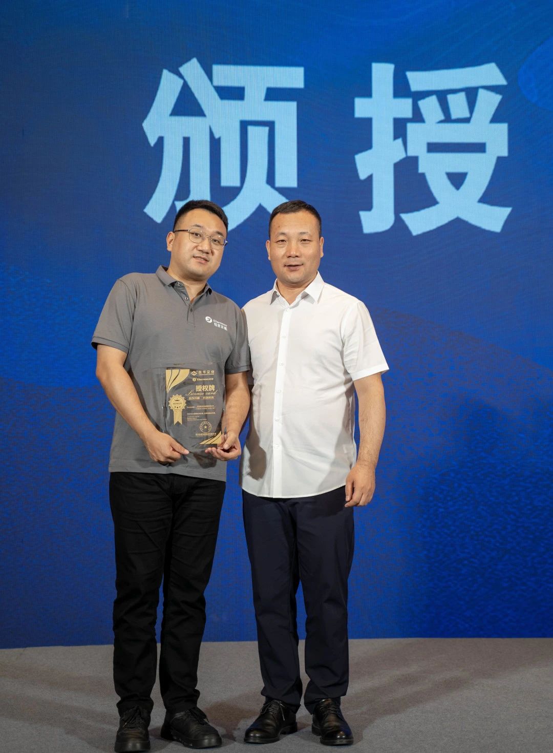 在恒新彩涂板經(jīng)銷商的頒授儀式上,京華企業(yè)總經(jīng)理陳鐵柱先生為新洋實(shí)業(yè)總經(jīng)理齊林先生頒發(fā)授權(quán)牌,并與特邀嘉賓一同合影留念,進(jìn)一步加深合作。恒新品牌的成功離不開合作伙伴的支持和努力,而頒授儀式則是向他們致以最真摯的感謝和祝福的重要時(shí)刻。