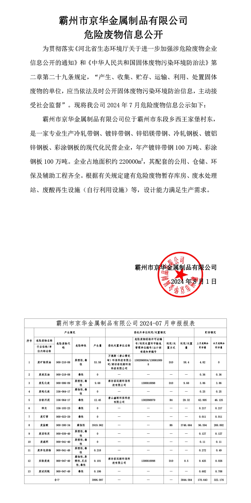 下一條:24年8月危險(xiǎn)廢物信息公開(kāi)-霸州市京華金屬制品有限公司